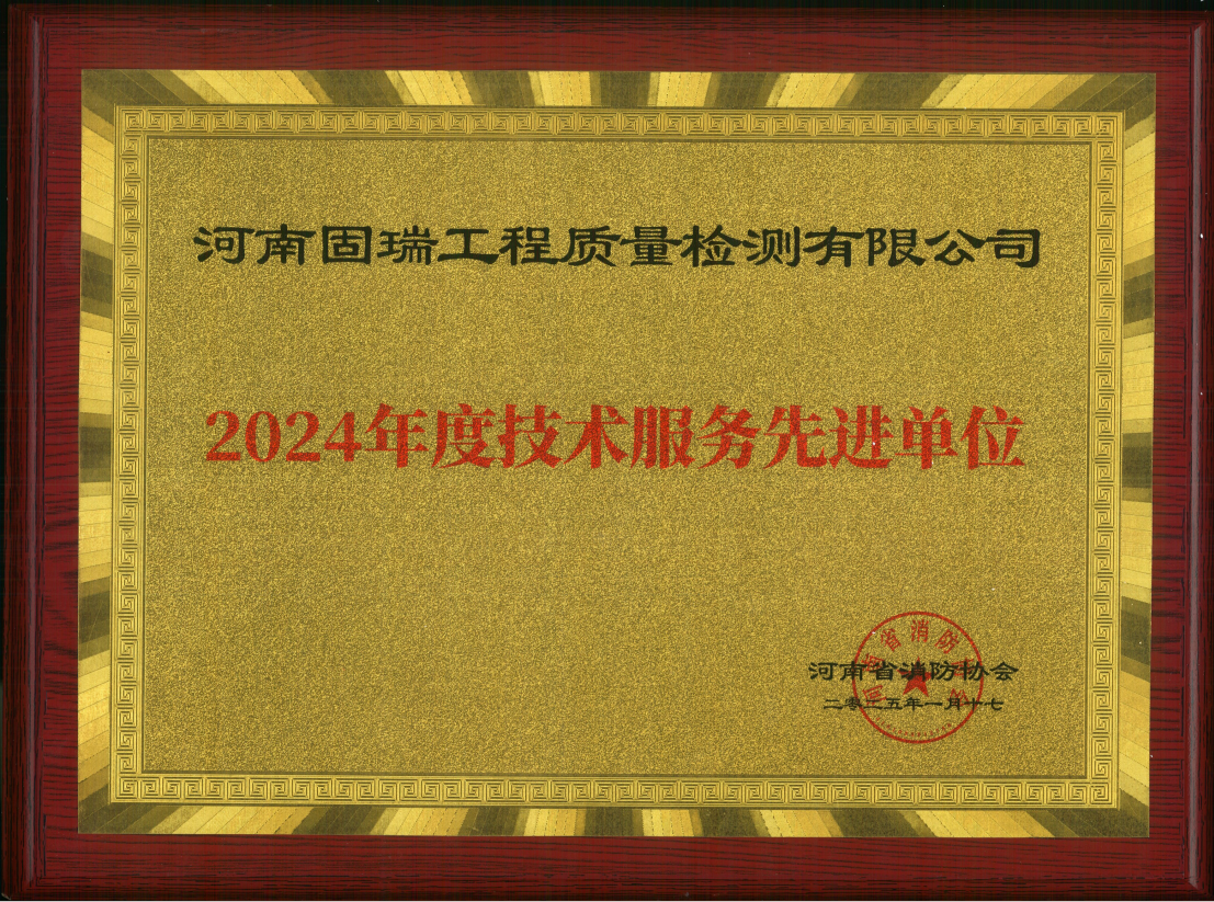 熱烈祝賀河南固瑞工程質量檢測有限公司榮獲河南省消防協會2024年度技術服務先進單位!!!